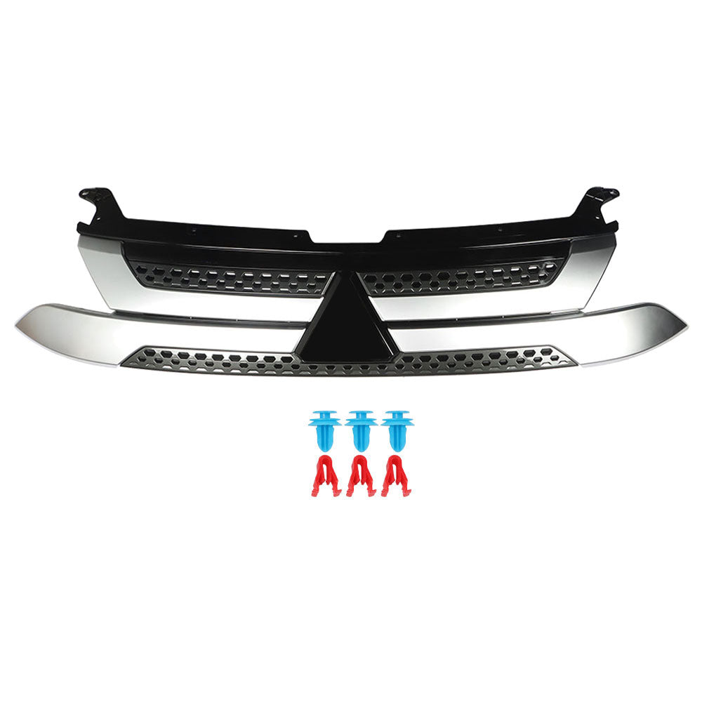 Front Upper Grille For 2019-2020 Mitsubishi Outlander Black & Silver Plastic