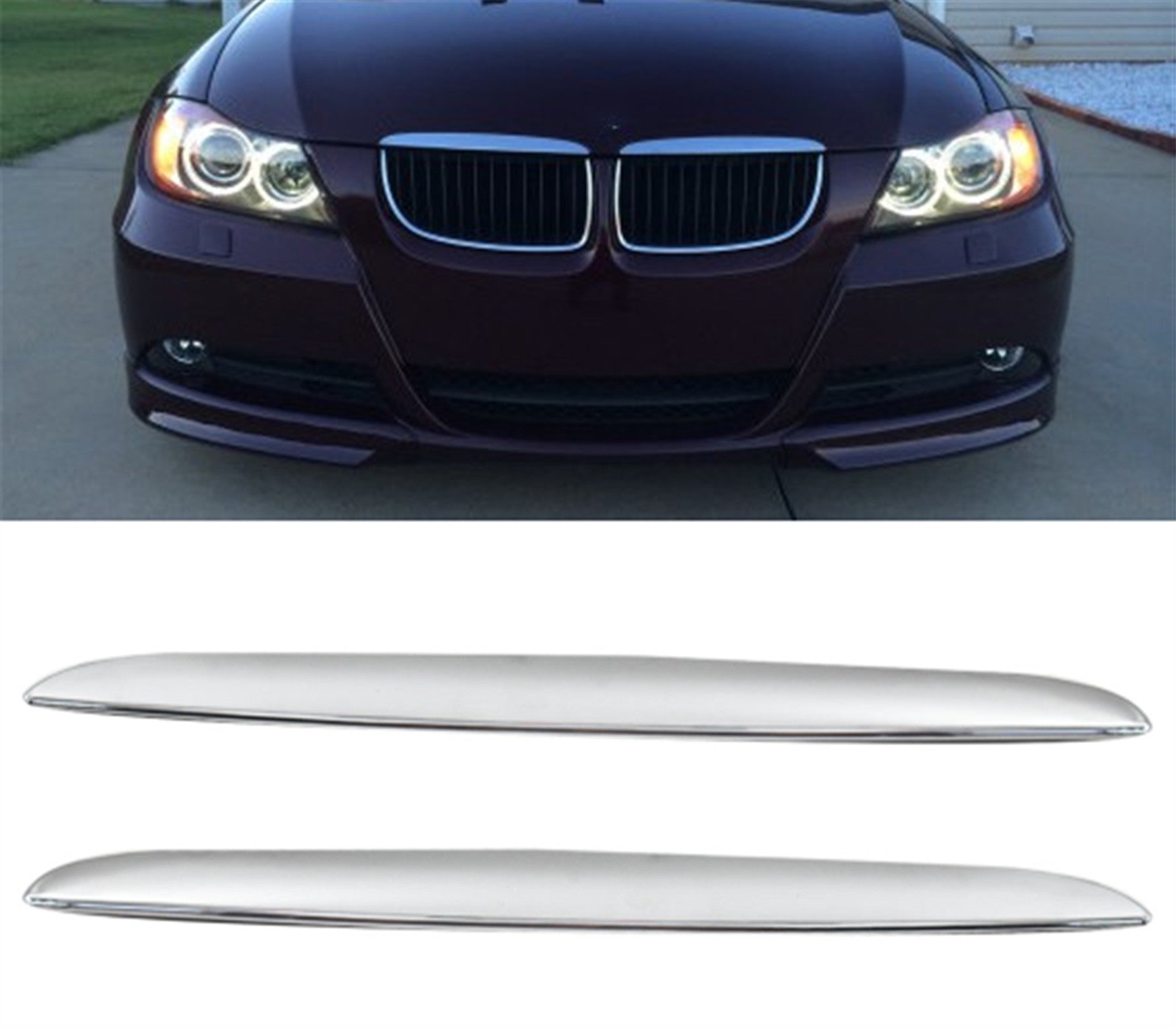 TOPPARTZ 2Pack Front Hood Chrome Cover Trim Above Grille fit for BMW E90 E91 3-Series 06-08